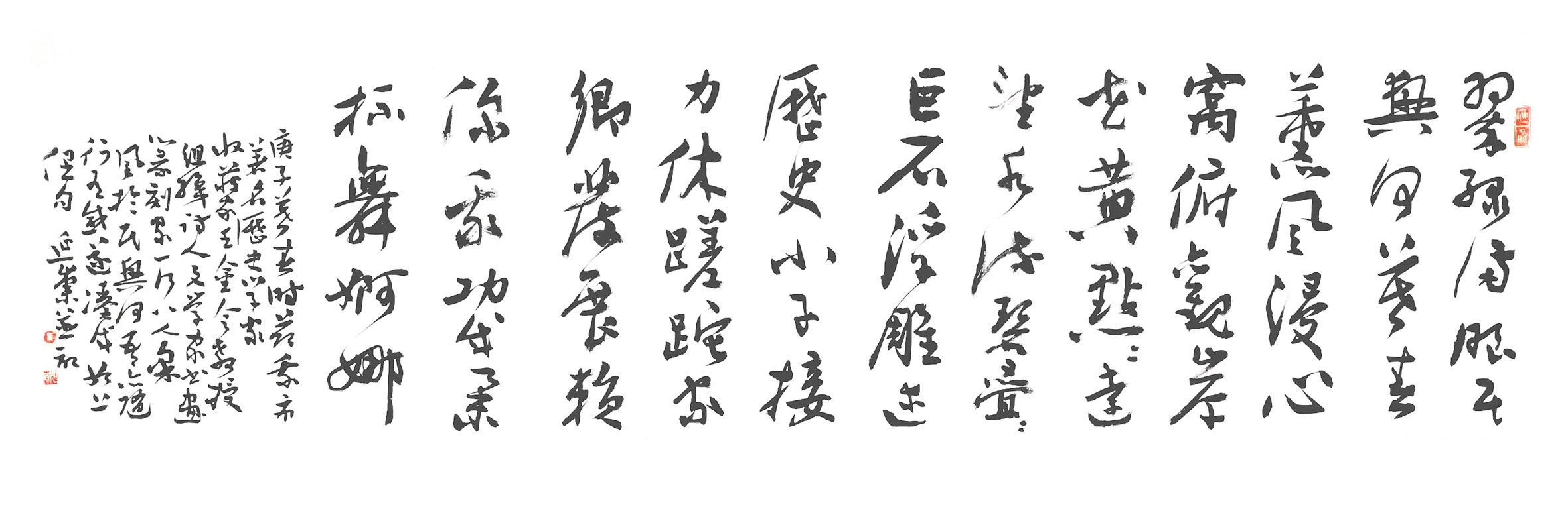 庚子季春,风吹杨柳,遍地黄花。余老与郭君德森而弥兴,欣然首倡,在企业家、收藏家范君晓东支持下,邀营川五界名士欢聚南郊民兴河畔,吟诗、书丹、作画,贺大疫决胜,感党恩、舒心田、展才华。悠哉,乐哉!