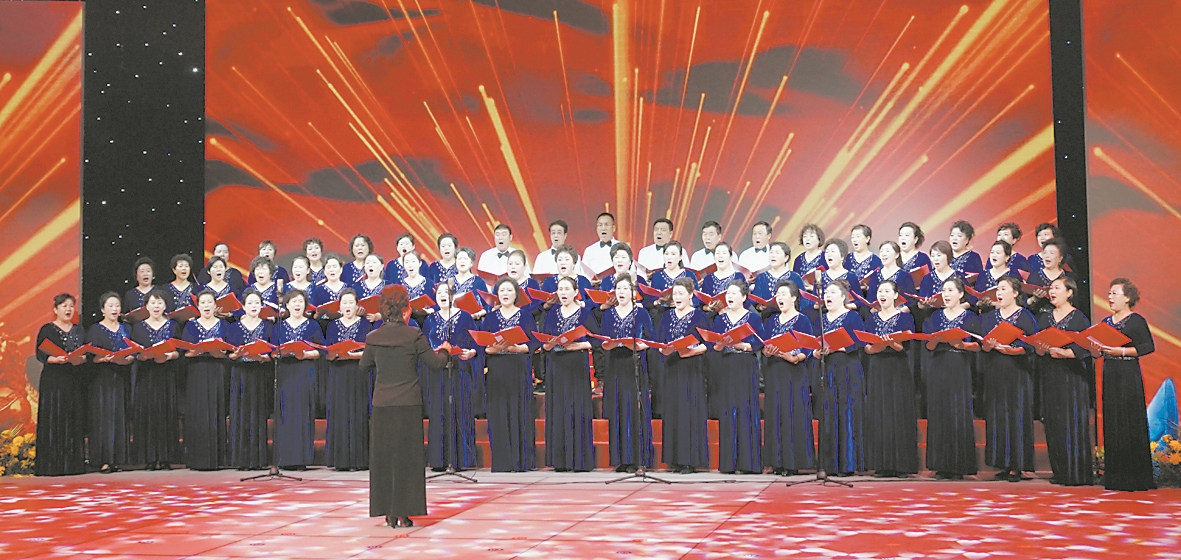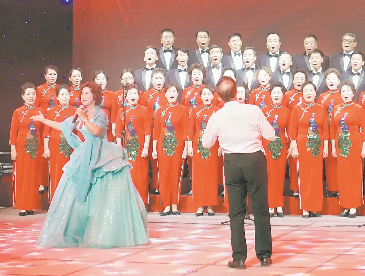 市渤海潮民族合唱艺术团演员周华今年59岁,她说:“合唱艺术特别适合老年人。歌唱能充分展示真情实感,让人心潮澎湃,尽情抒发对祖国的热爱、对美好生活的向往。大家聚到一起,非常珍惜这个机会,我们愿努力追求身心健康、有质量的生活。”