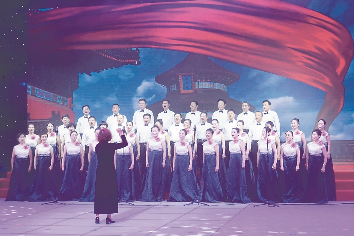 “五十六个星座五十六支花,五十六族兄弟姐妹是一家,五十六种语言汇成一句话,爱我中华爱我中华爱我中华……”一首耳熟能详的《爱我中华》,由一袭蓝色丝绒裙、白衬衫的中老年演员演绎起来,自豪、生动,格外有力量。