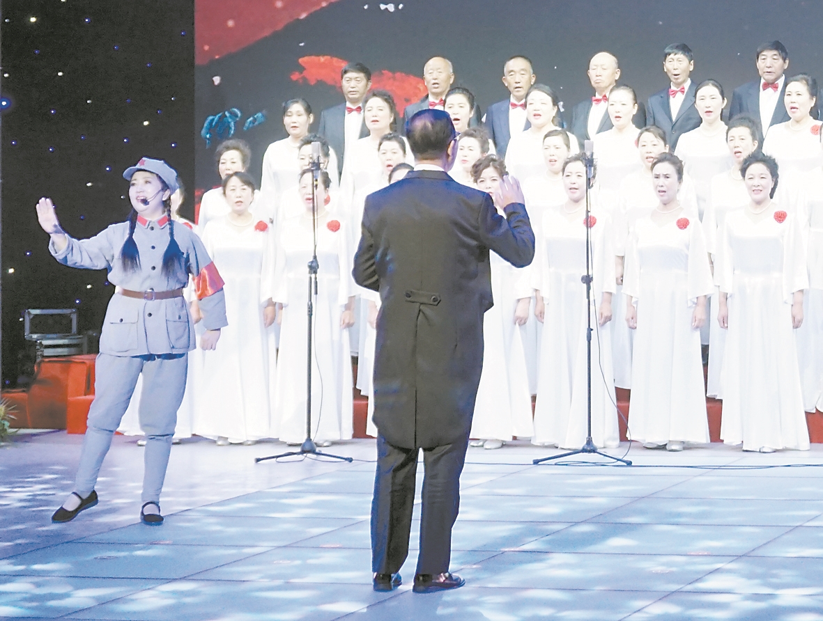 “……敌人弃甲丢烟枪,我军乘胜赶路程。调虎离山袭金沙,毛主席用兵真如神。”大屏幕上炮火连天,主唱一身红军军装,长征组歌《四渡赤水出奇兵》将观众思绪带向长征那段不平凡的历程。