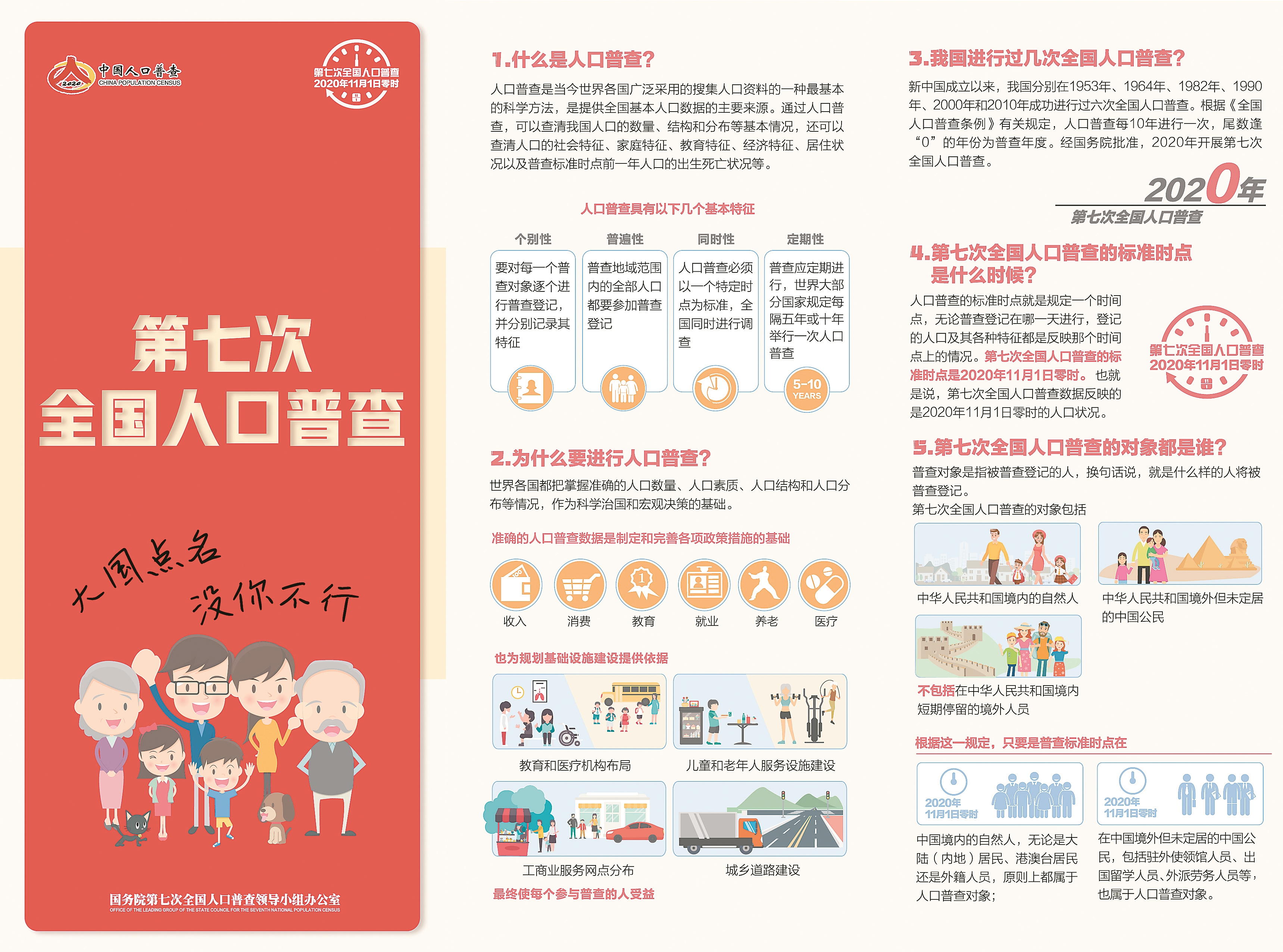 三、普查时间:普查标准时点是2020年11月1日零时。入户工作时间是2020年10月11日至12月10日。