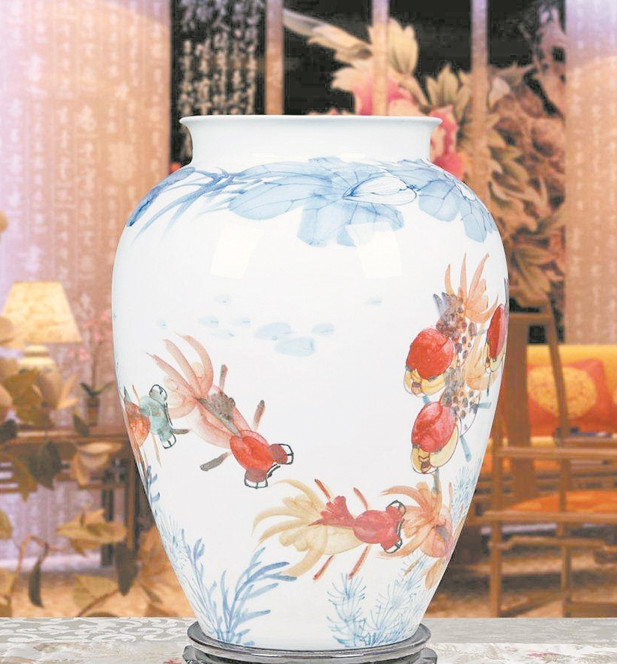 2012年以来,倪春盛对陶瓷绘画艺术青眼有加,他多次往返于江西景德镇,致力于陶瓷绘画创作,在土与火的奇妙交融中,又为他心爱的金鱼开辟出一方独特的游动空间。2014年,他的作品荣获首届景德镇中外陶瓷艺术家原创新品大奖赛“御窑杯”金奖。中国工艺美术大师王锡良赞其为“金鱼圣手”。