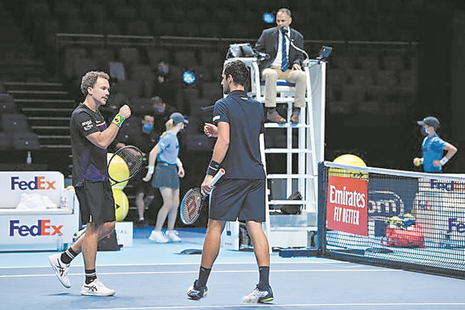 38岁的巴西老将索阿雷斯,今年迎来了又一波职业巅峰。2019年开始与帕维奇搭档后,法网男双和巴黎大师赛均闯入决赛,美网男双更是再度捧杯。截至目前,索阿雷斯已经6夺大满贯冠军,其中男双3个、混双3个,并且索阿雷斯/帕维奇成为年终男双第一。这也是索阿雷斯继2016年(与杰米-穆雷合作)后再次占据这一位置。