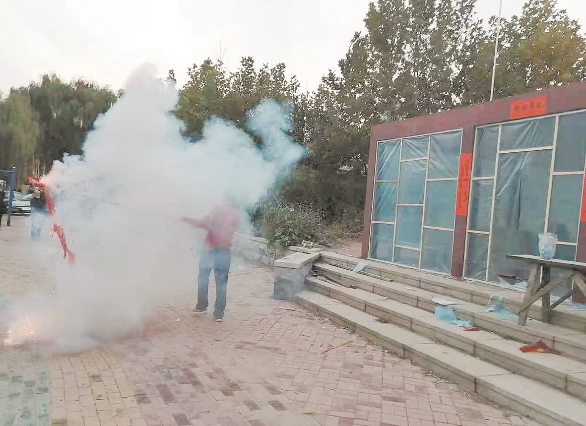 “我们的水立方”建成后,居们们燃放鞭炮庆祝