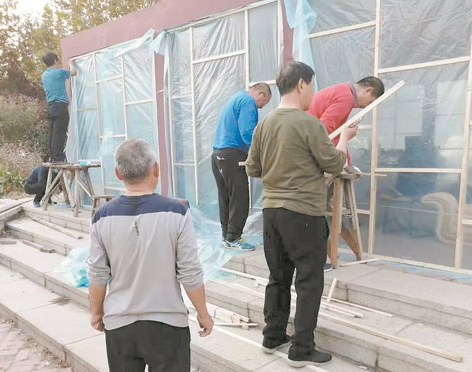 鼠年尚未入冬,寒风乍起,院内日显萧条,一些老年人有了改造凉亭的主意。他们中什么能工巧匠都有,大家群策群力,搞设计,集资捐物,钉好木架子,覆上塑料膜,将一个大凉亭改建成了一个70多平方米的有门有窗、明亮宽敞的大暖房。顶棚有太阳能灯,正面墙上有电子钟,四周有桌椅、沙发、立柜,中间空着,是表演场地。门外高高的旗杆上,庄重地升起了一面五星红旗。从此,无论什么天气,风霜雨雪,天寒地冻,到凉亭里活动的老人络绎不绝,笑声飞扬。尽管名不符实了,有人还叫它凉亭;文雅点儿的,叫它老年活动室;更多的人根据它的外形,叫它“我们的水立方”。叫“我们的水立方”好,很形象,是赞美,是喜爱,是把它当成了自己的家。
