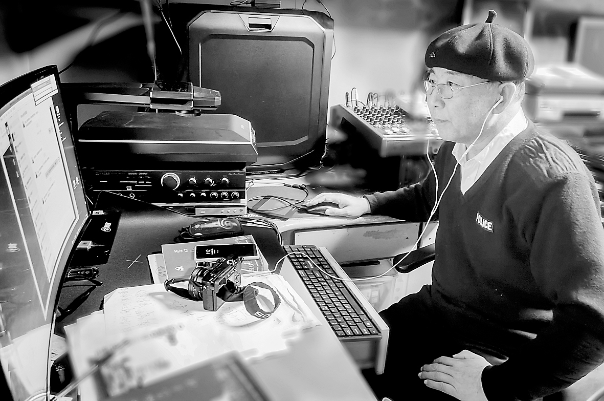 李福使用电脑音响收听广播节目