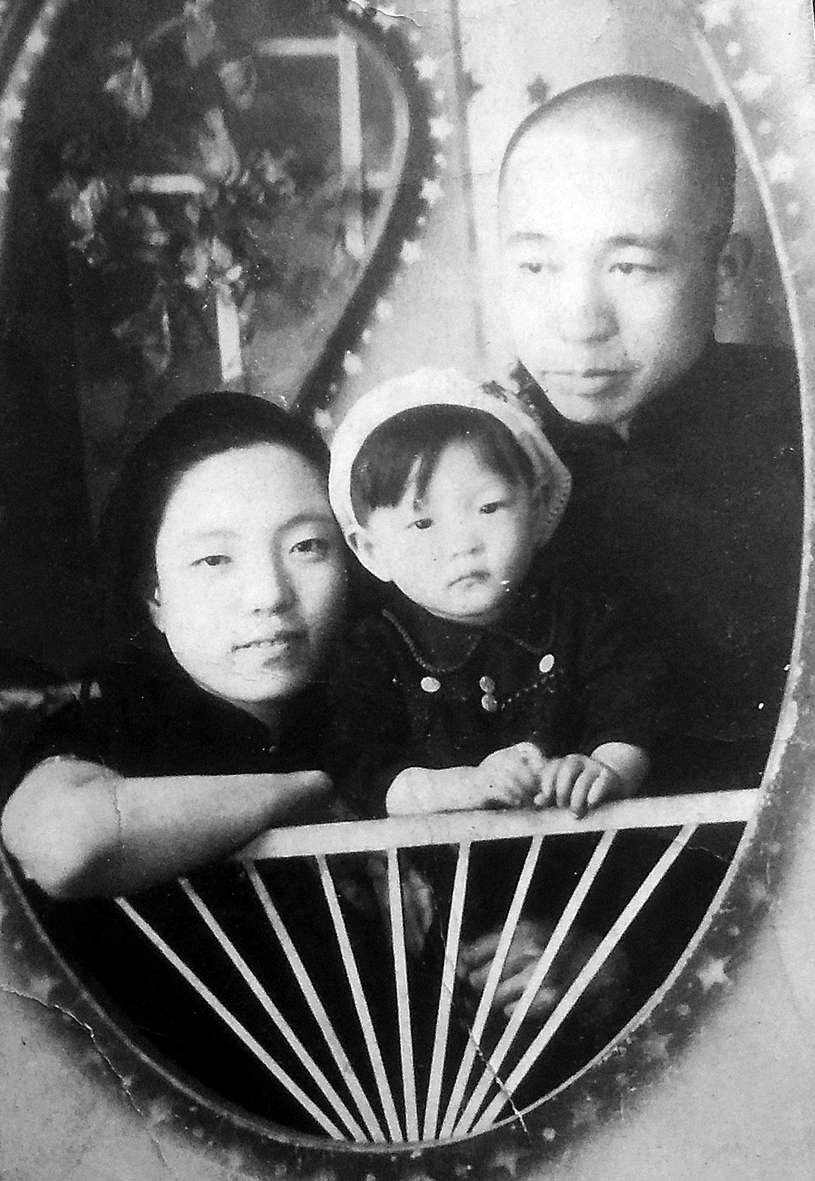 1945年初,张霖、边江与大女儿张欣欣在营口合影。