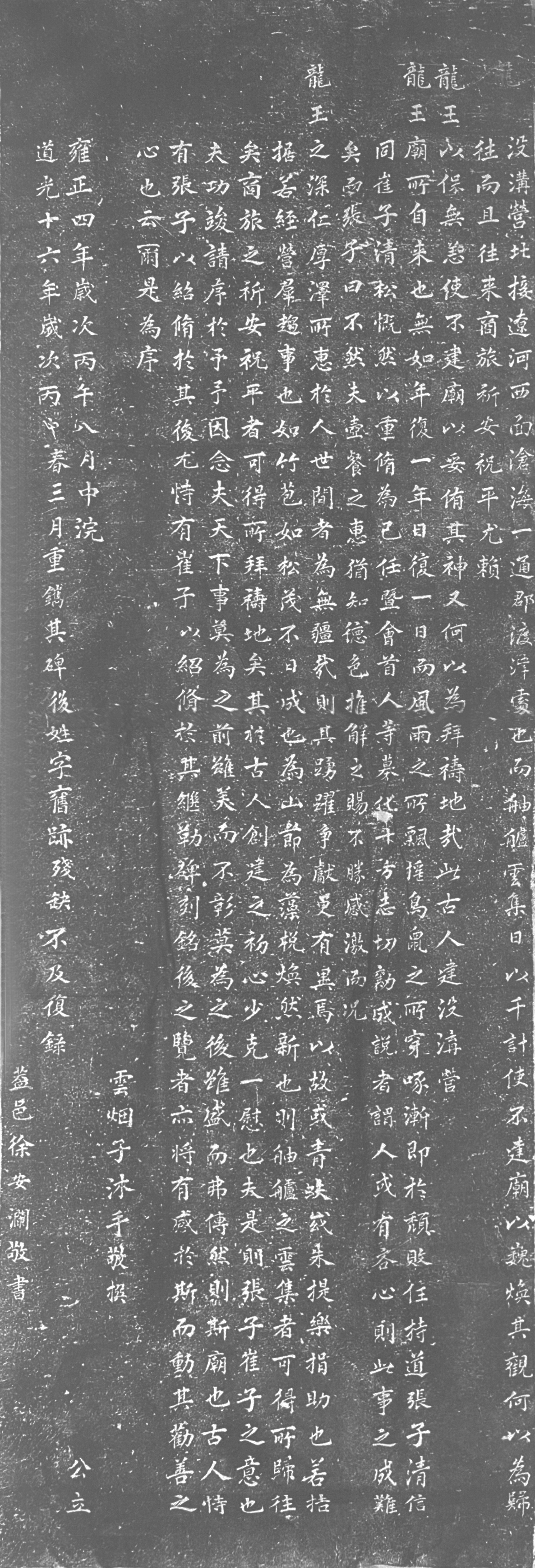 清《雍正四年重修没沟营龙王庙碑》[雍正四年(1726年)·埠内西大庙(该碑因字迹不全于道光十六年重锔)]
