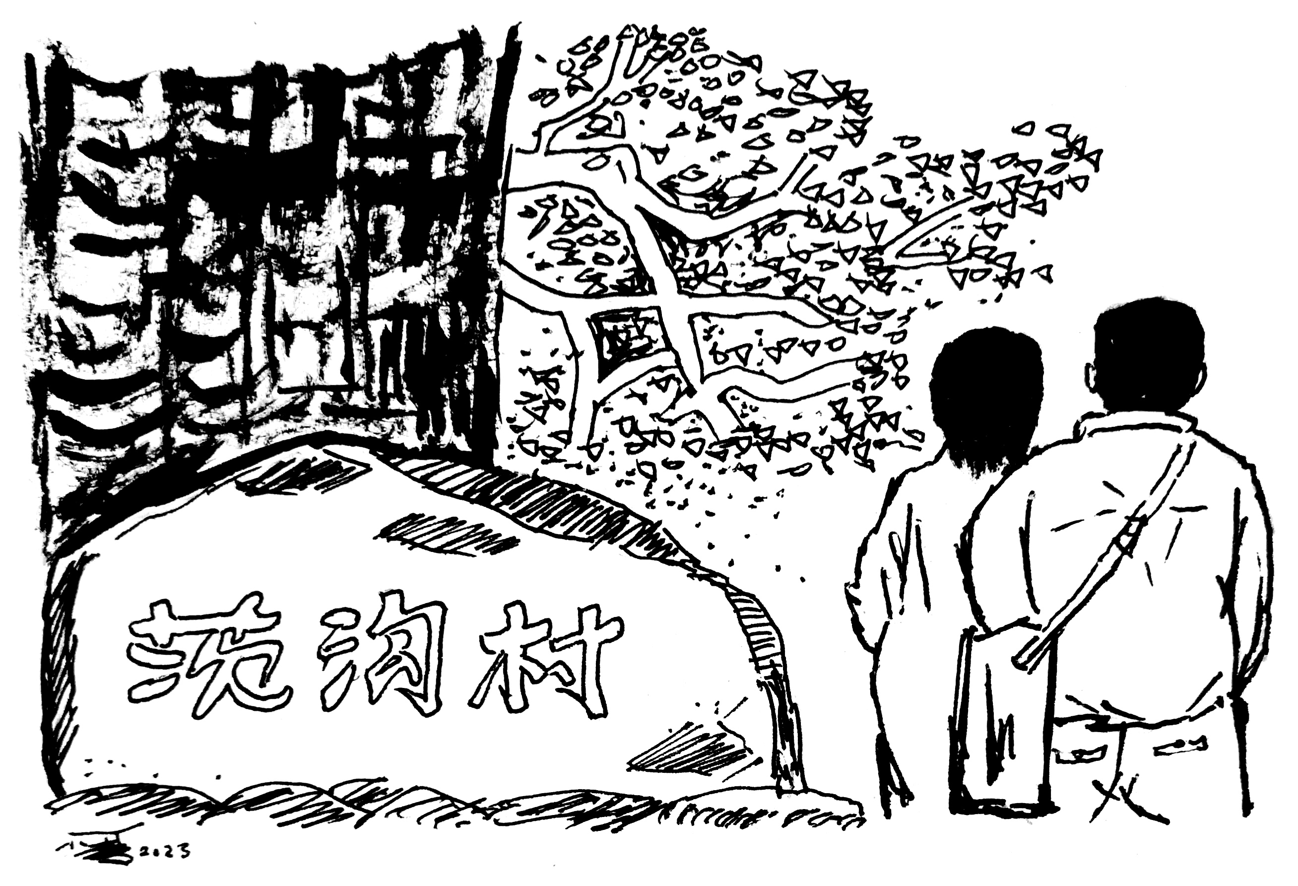 阳光明媚,空气很新鲜,刻在石头上的“茨沟村”几个字很鲜艳。