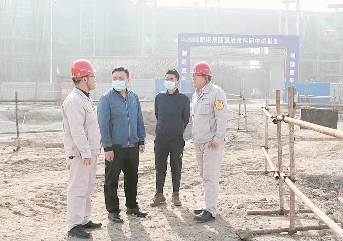 在鞍钢股份鲅鱼圈钢铁分公司,投资1亿元的流化床氢气炼铁中试线项目目前已经开工建设,区发改局的工作专班深入现场,详细了解建设情况,进一步理清为企业提供精准服务的方向,确保重大项目按时达产达效。