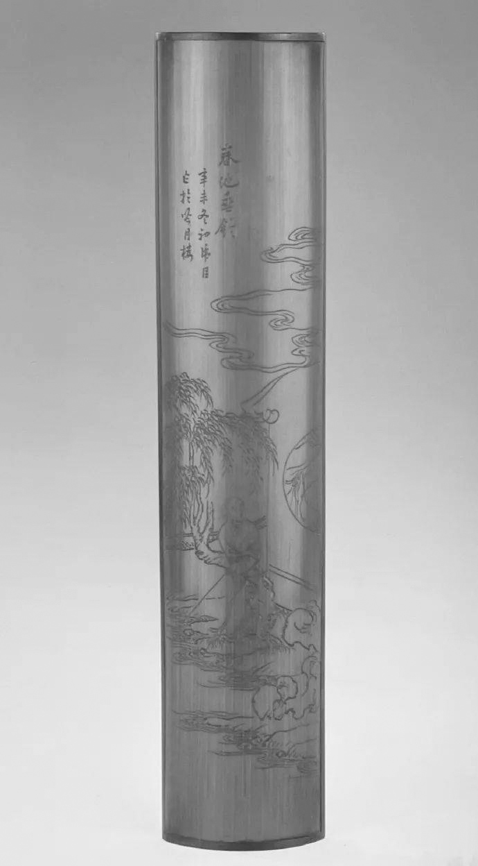 笔筒起源较早,很可能在毛笔出现后不久就应运而生了。三国时期的陆玑在《毛诗草木鸟兽虫鱼疏·螟蛉有子》中说:“或书简笔筒中,七日而化。”这是关于笔筒较早的记载。从考古挖掘来看,湖南长沙战国楚墓出土的竹管(内藏毛笔),是迄今发现年代最早的笔筒。据此推断,最早的笔筒可能为竹制,之后演变为紫檀木、铜、陶瓷、象牙、紫砂、黄花梨、玻璃水晶等材质,样式也越来越丰富。海南省博物馆藏有清代青花开光花卉纹寿字笔筒、清代青花花鸟纹笔筒、清代竹雕赤壁夜游图笔筒、清代黄花梨笔筒、民国时期雕花纹木制笔筒、民国时期青花绿龙纹笔筒等9件笔筒。这些笔筒不仅实用,也具有较高的艺术和审美价值。