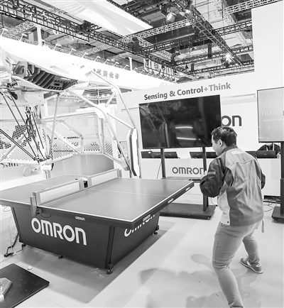 上旋球、下旋球、削球……在本届进博会技术装备展区,记者参与了一场战况激烈的乒乓球赛。不过,记者的对手不是人而是机器人。