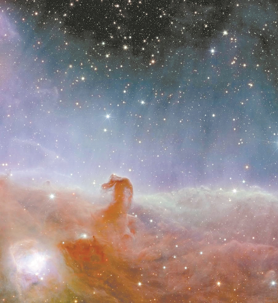 图1 欧洲航天局日前在其官网公布了“欧几里德”空间望远镜拍摄的首批彩色图像,呈现了英仙座星系团、螺旋星系以及球状星团等的壮丽景象,将有助于揭示暗物质和暗能量等宇宙奥秘。图为欧洲航天局公布的“欧几里德”空间望远镜拍摄的马头星云的彩色图像。