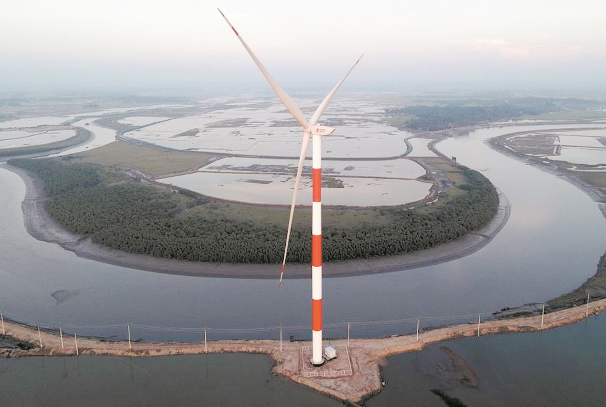 图5 中企投资承建的孟加拉国首个集中式风电项目——科克斯巴扎尔风电项目日前并网发电。该项目由国家电投集团五凌电力有限公司投资开发、中国电建集团成都勘测设计研究院有限公司总承包建设,于2021年9月开工。项目投产后,年发电量约1.45亿千瓦时。图为孟加拉国科克斯巴扎尔风电项目现场。