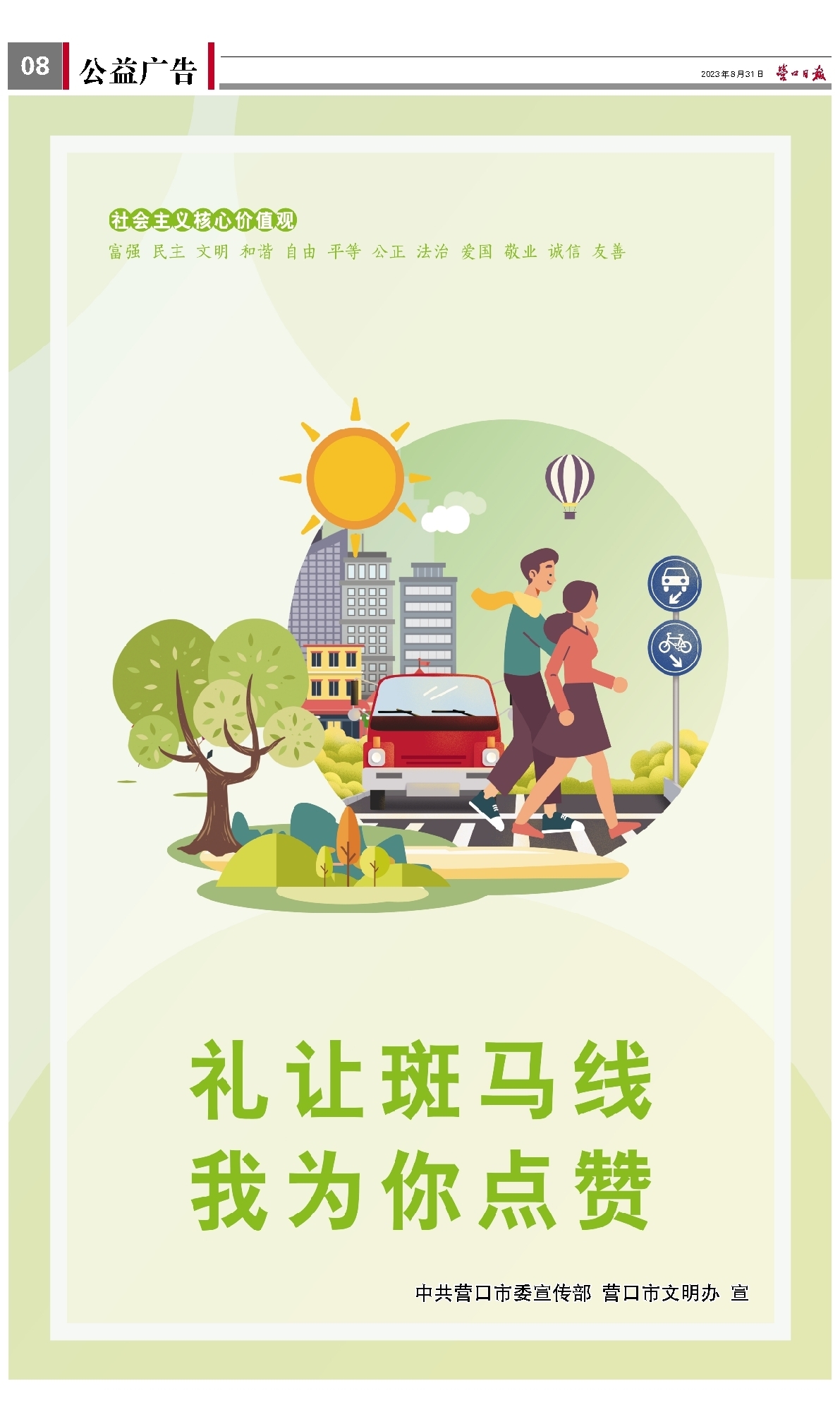 本报讯 记者叶梦报道 8月30日,市交通局和营口交运集团联合开展“倡导绿色出行,共建文明健康美好生活”宣传活动,提升公众绿色出行意识,倡导文明健康环保生活方